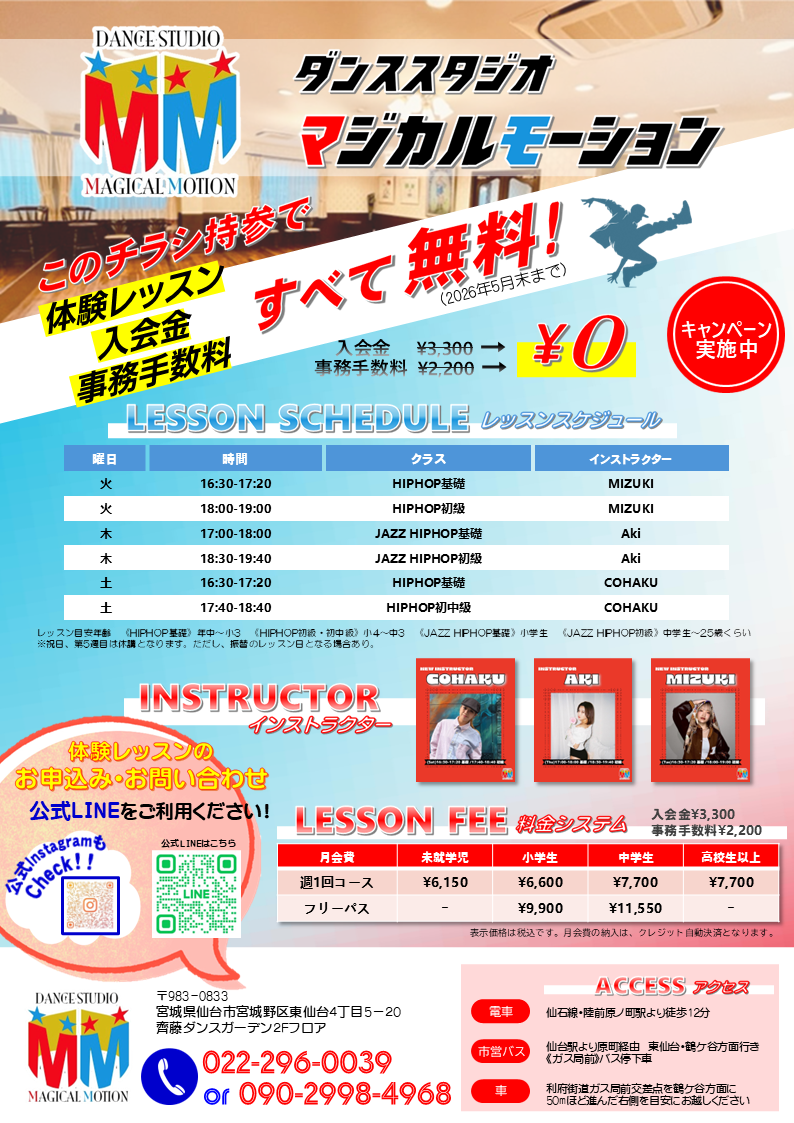 「ダンススタジオマジカルモーション」が仙台市公式ホームページに掲載されました。